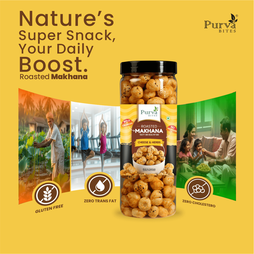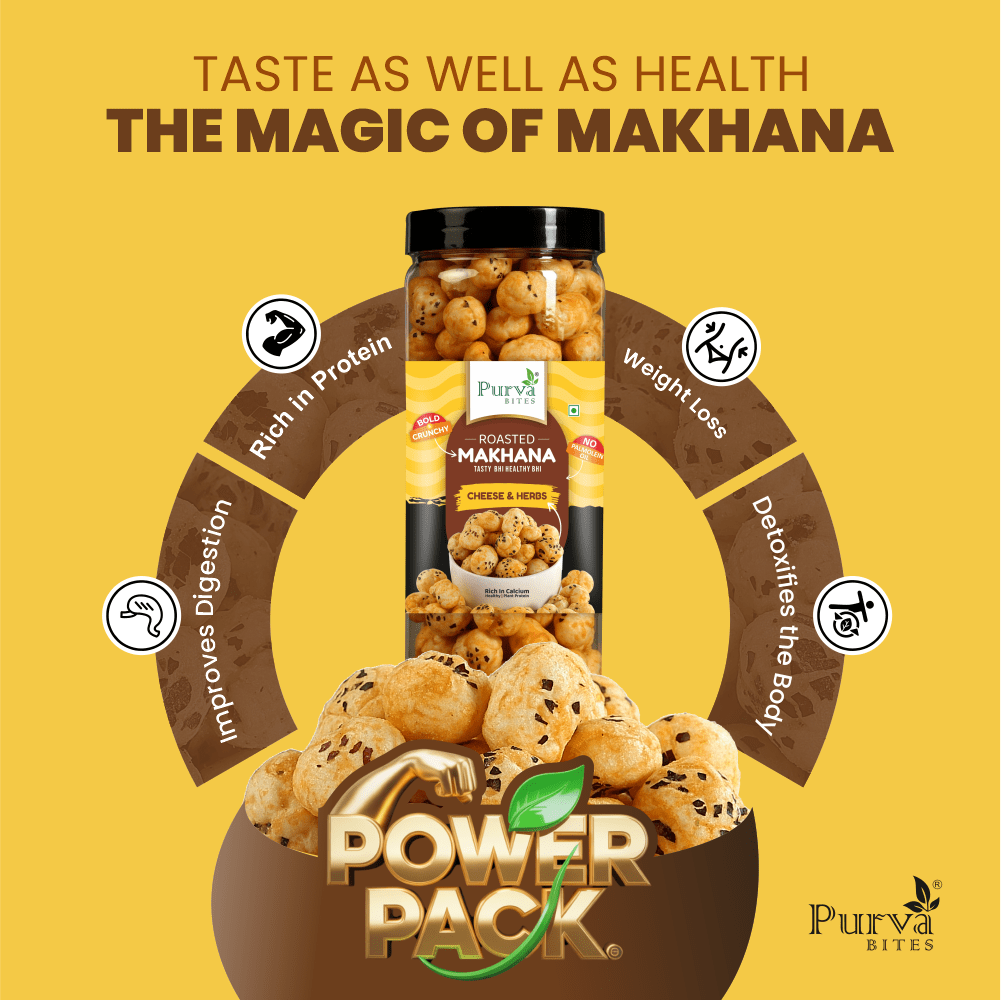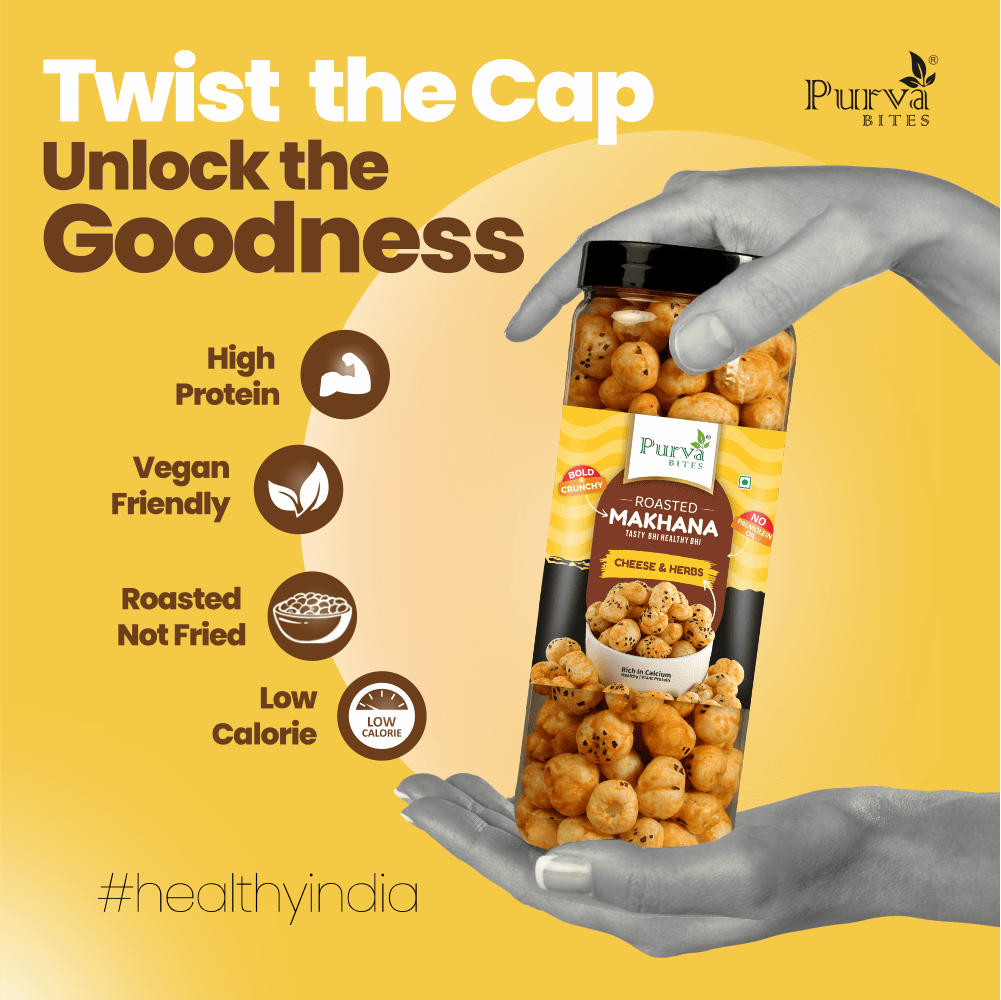 Here’s a wholesome snack that’s both healthy and indulgent? Try our mouth-watering cheese and herbs makhana! Made from popped lotus seeds (makhana) and a blend of delectable herbs and spices, this crunchy and savory snack is perfect for satisfying your cravings without compromising your health goals. Our makhana is also generously coated in real cheese, adding a rich and creamy flavor that will have you coming back for more. Enjoy it as a mid-day snack or as an appetizer for your next get-together – either way, this irresistible snack is sure to be a hit with everyone!