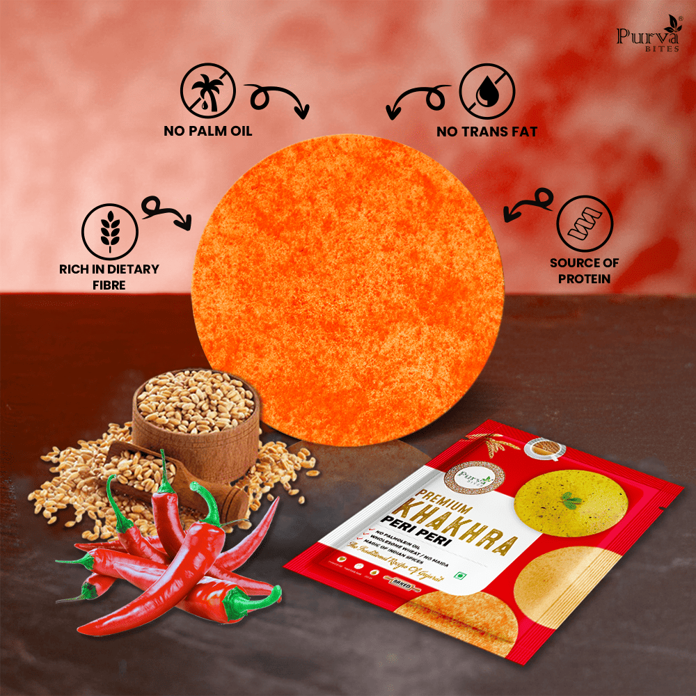 Let’s spice up your snack time with our Peri Peri Khakhra! Made with premium quality spices and wholesome ingredients, these crispy crackers deliver a fiery and bold flavor that is sure to awaken your taste buds.